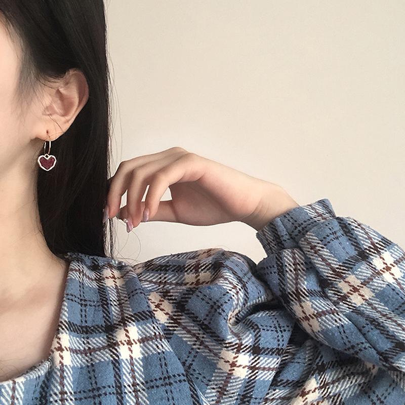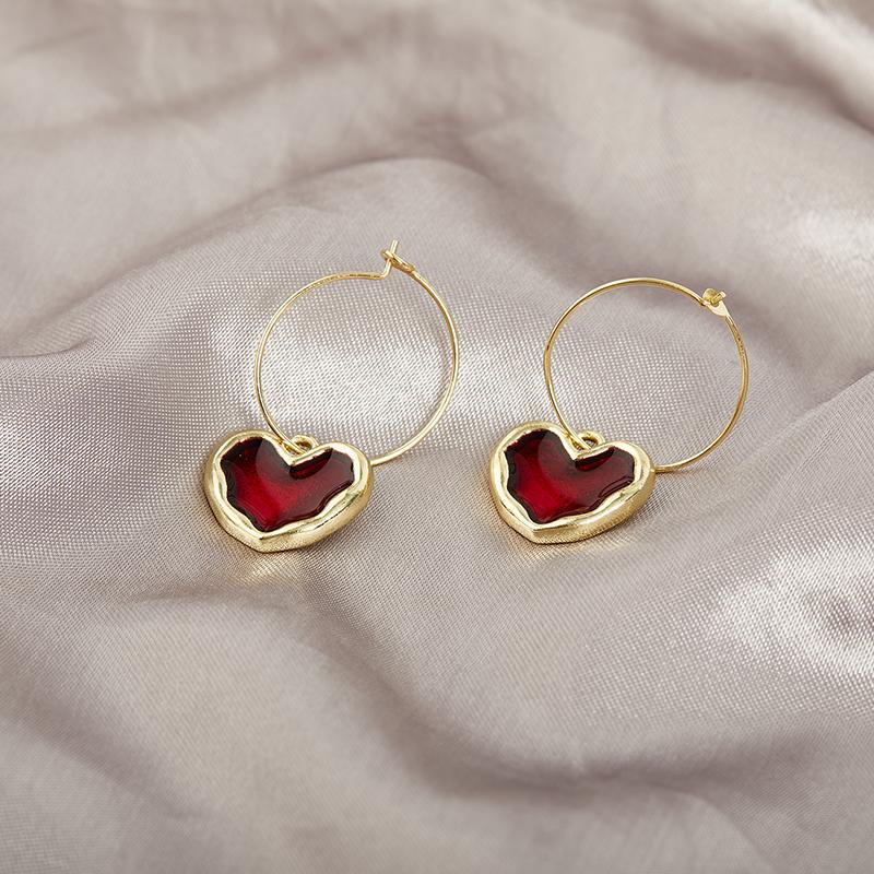 Милые серьги-сердечки с бордовой эмалью для женщин Love Heart Hanging Dangle