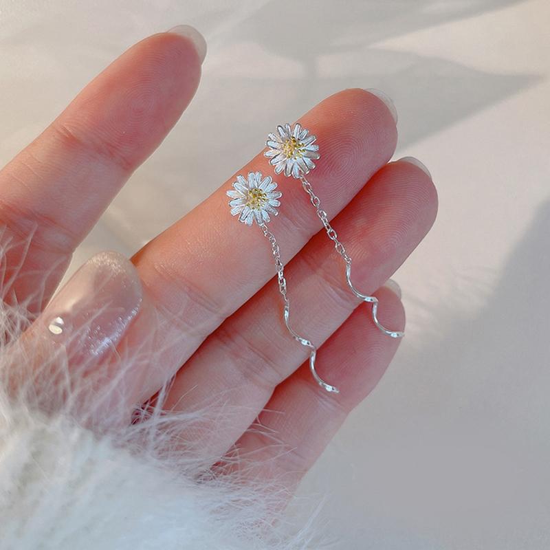 1 пара серебряных трендовых сережек-маргариток с длинной проволочной нитью и кисточками для женщин, серьги для пирсинга, ювелирные изделия для девочек
