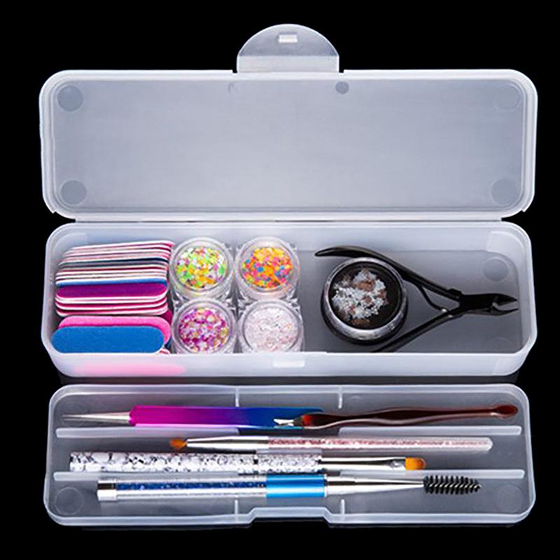 Прямоугольный двухслойный инструмент для дизайна ногтей, пустая коробка для хранения, пинцеты, машинки для стрижки, ручки, буферные пилочки для полировки ногтей, пластиковый контейнер