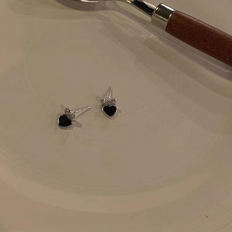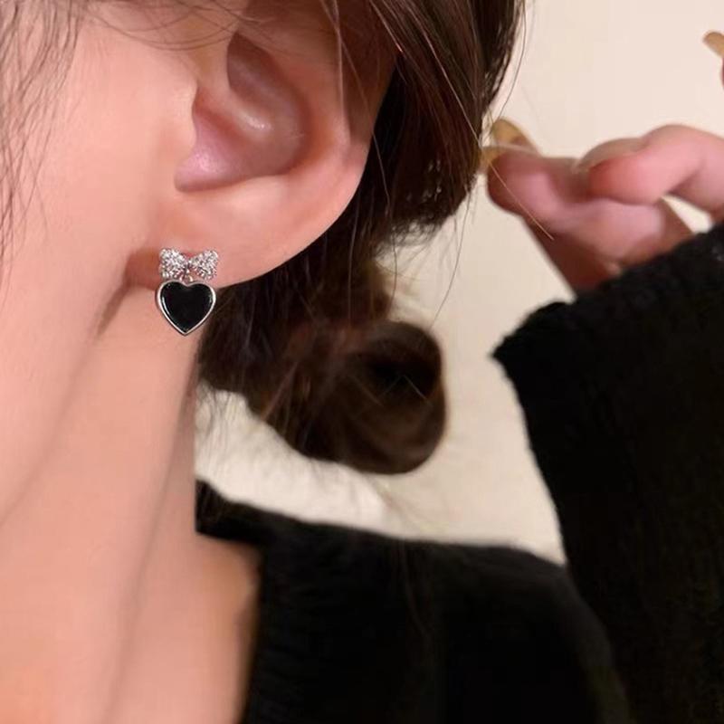 Женские серьги Асимметричные милые черные серьги-подвески в форме сердца с бантом