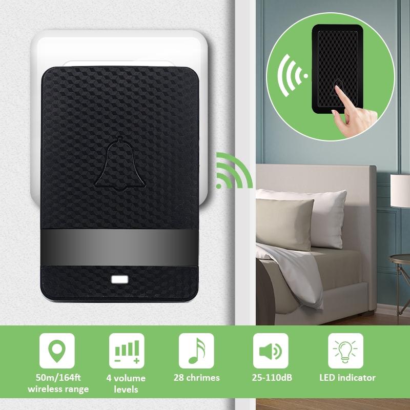 Wireless Doorbell, IP68 Waterpoof Door Bell Chime Operating at 164 Feet with 28 Melodies, 4 Volume Levels & LED Flash