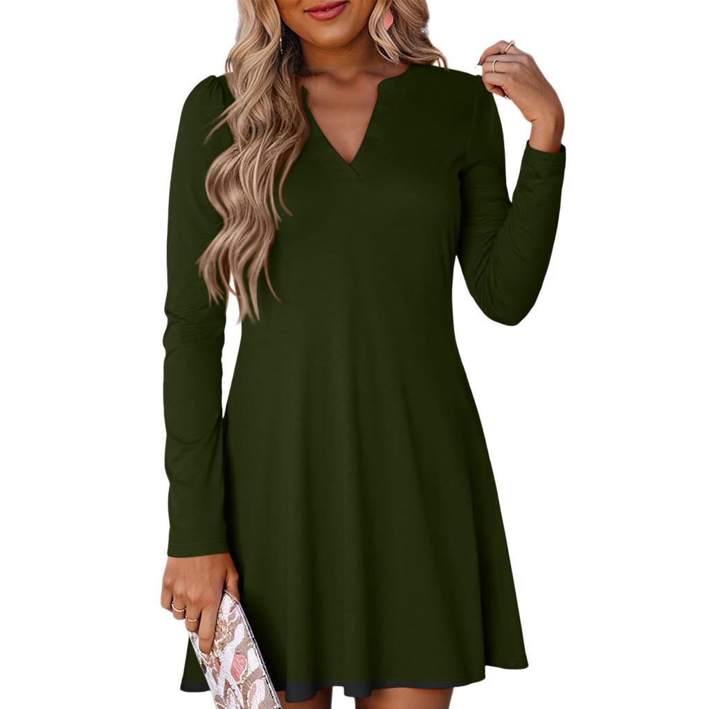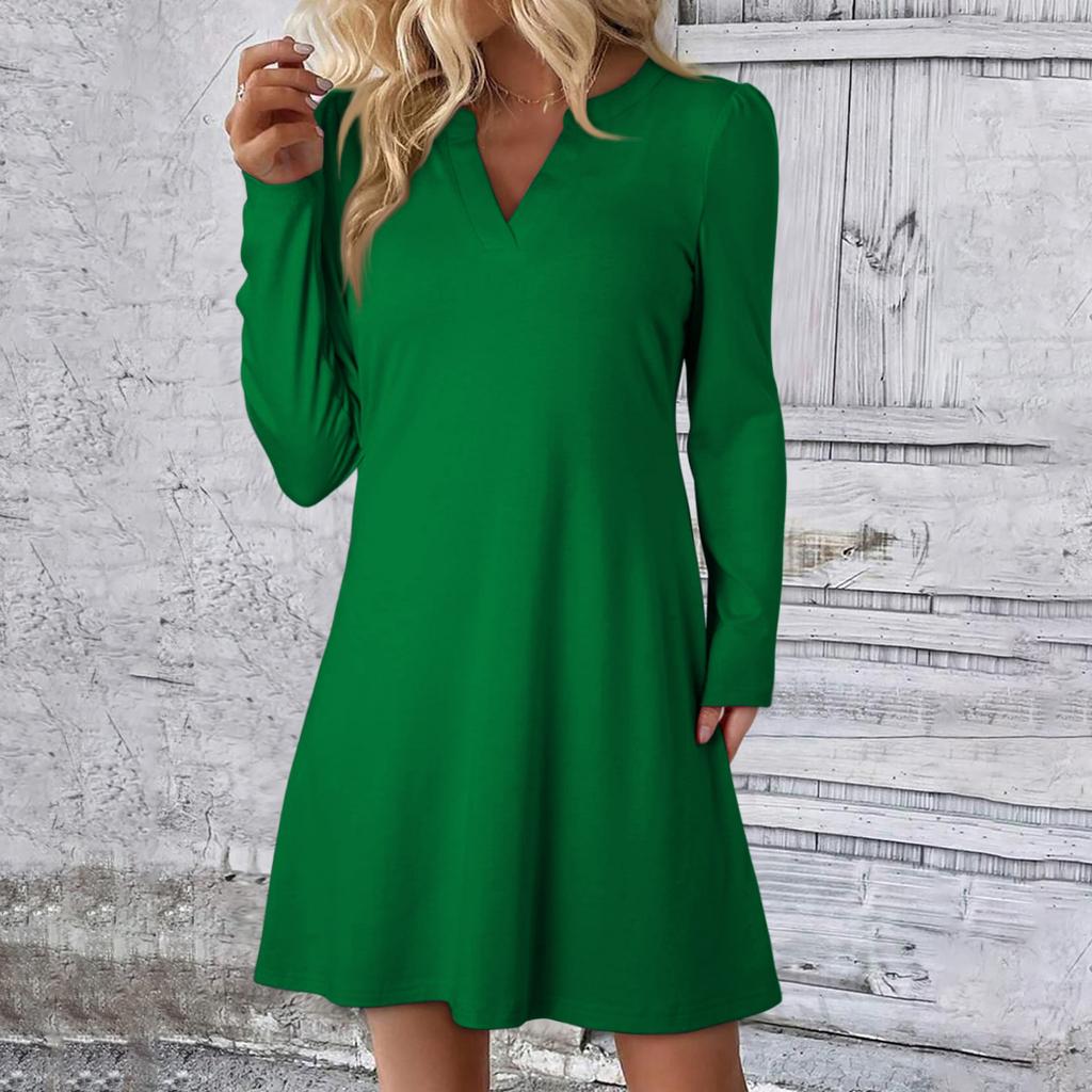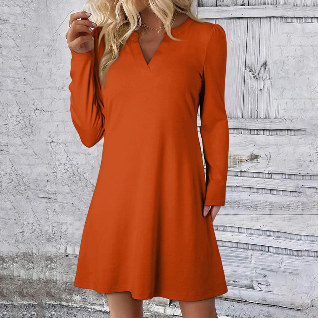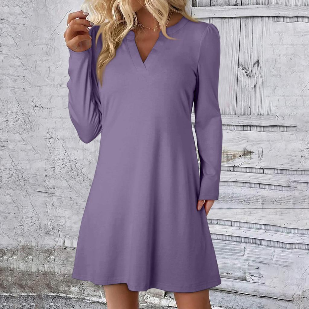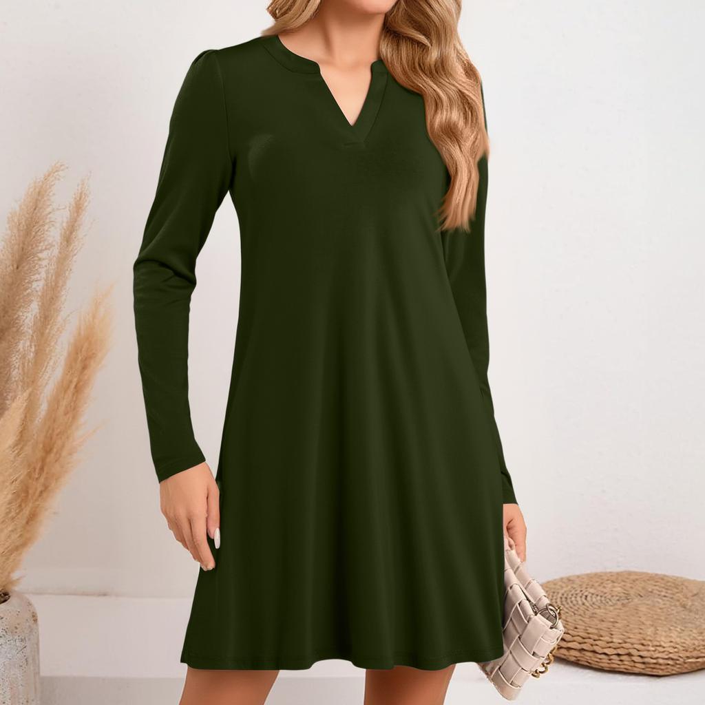 Женское однотонное платье свободного кроя с V-образным вырезом, повседневное, модное, длинное платье с длинными рукавами