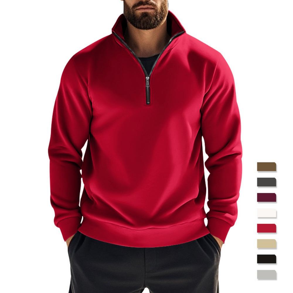 Осень Зима Мужские Повседневные Однотонные Толстовки Мода Воротник-стойка с Полумолнией Спортивный Пуловер Социальная Уличная Одежда