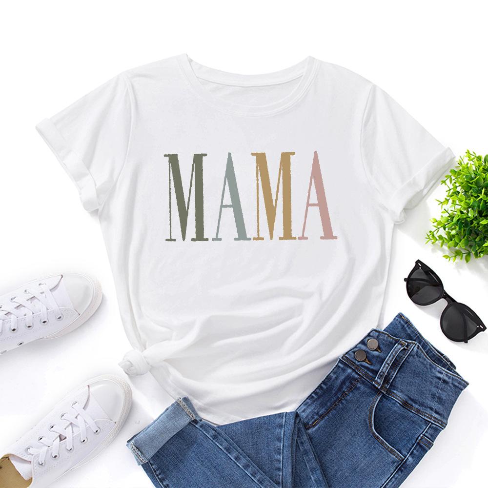 MAMA Cotton T-Shirt Short Sleeve Round Neck Women 2d Print Tops