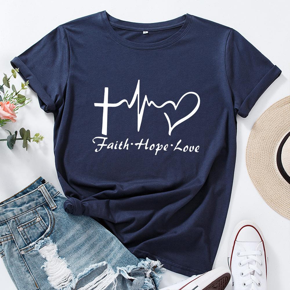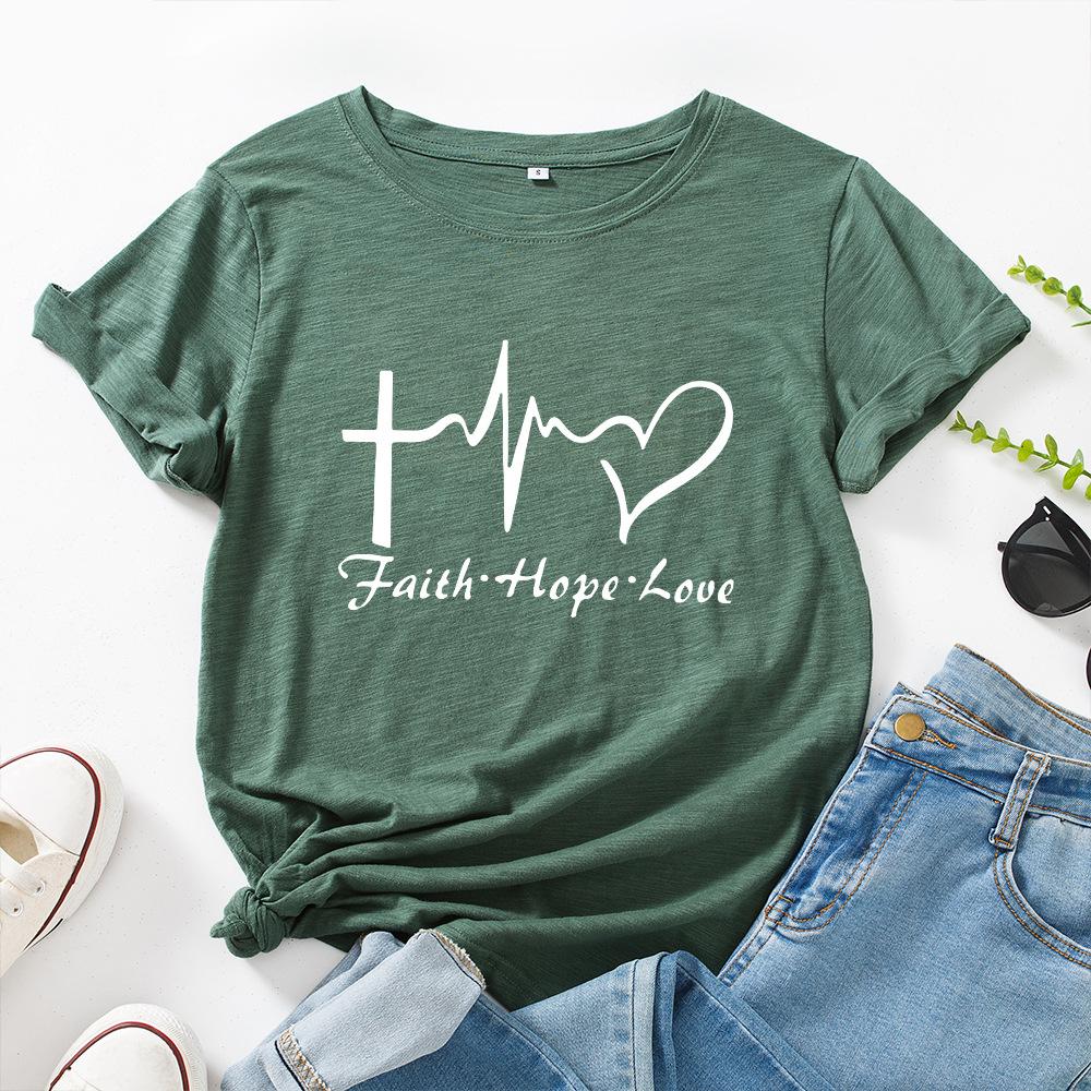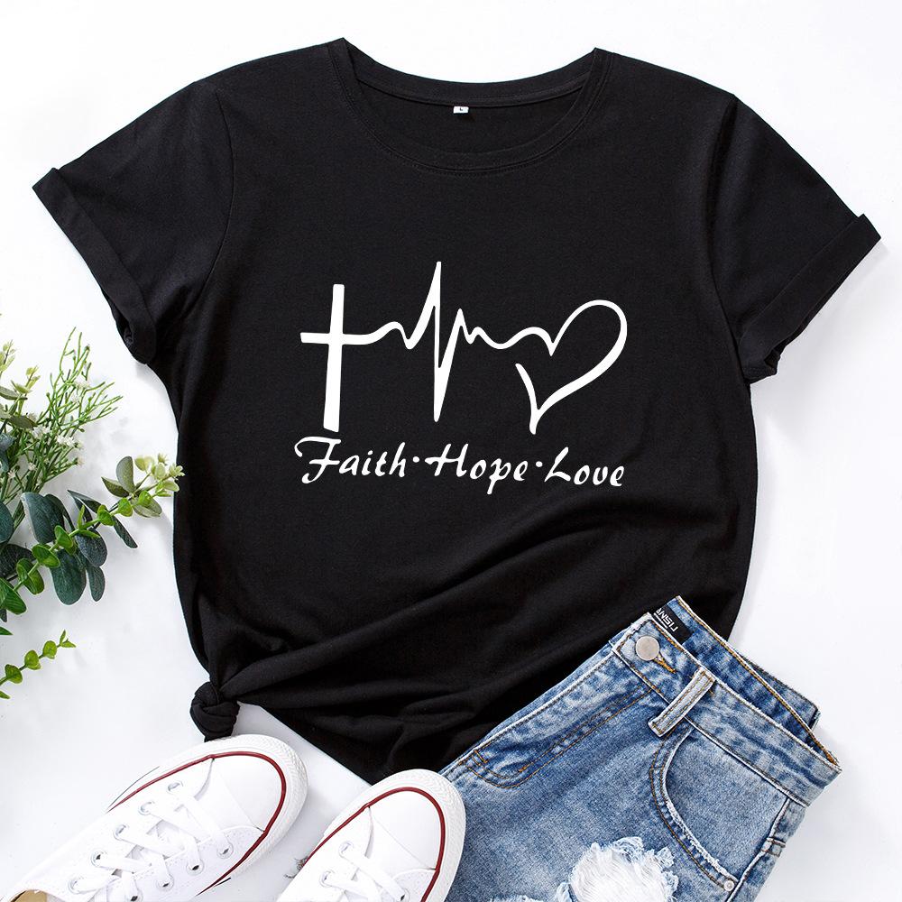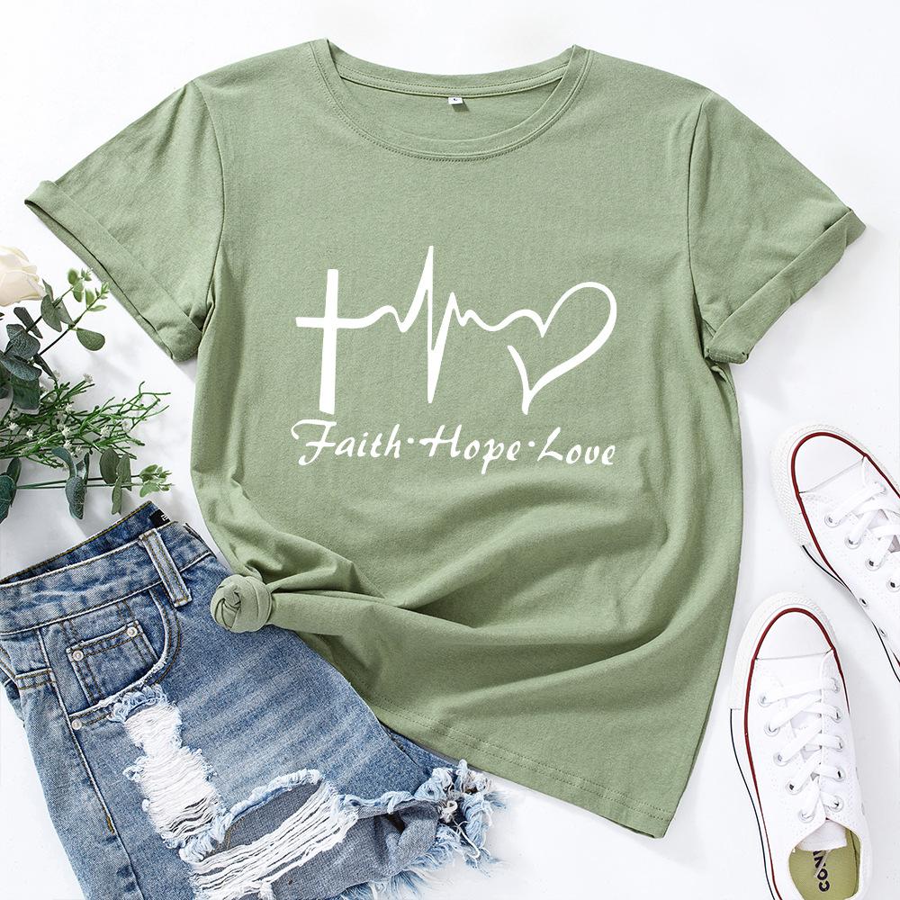 Вера Креативный Алфавит Хлопковая Футболка Короткий Рукав Круглый Вырез Женская 2D Принт Топы