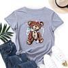 Мультяшная хлопковая футболка с медведем, с коротким рукавом, мягкая футболка, круглый вырез, женские топы с 2D-принтом