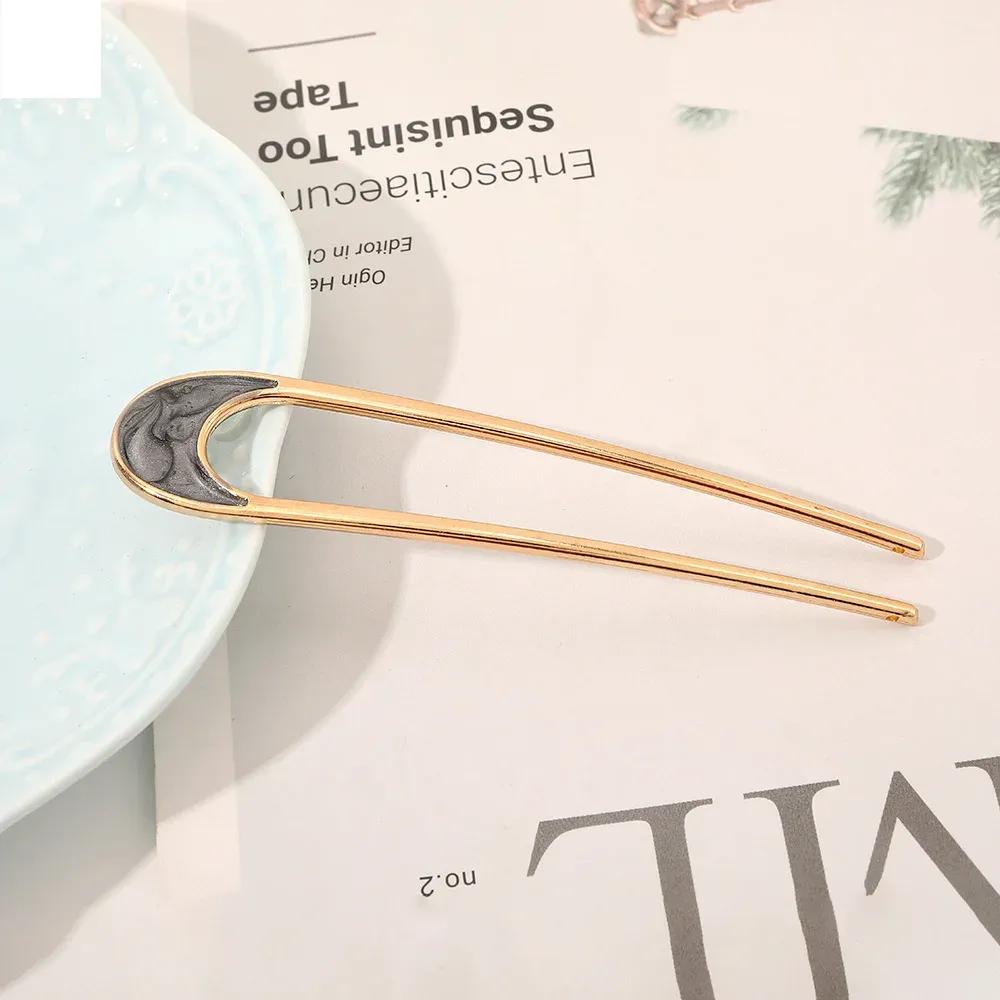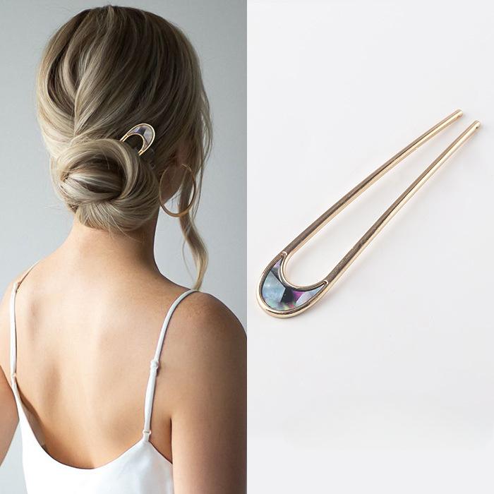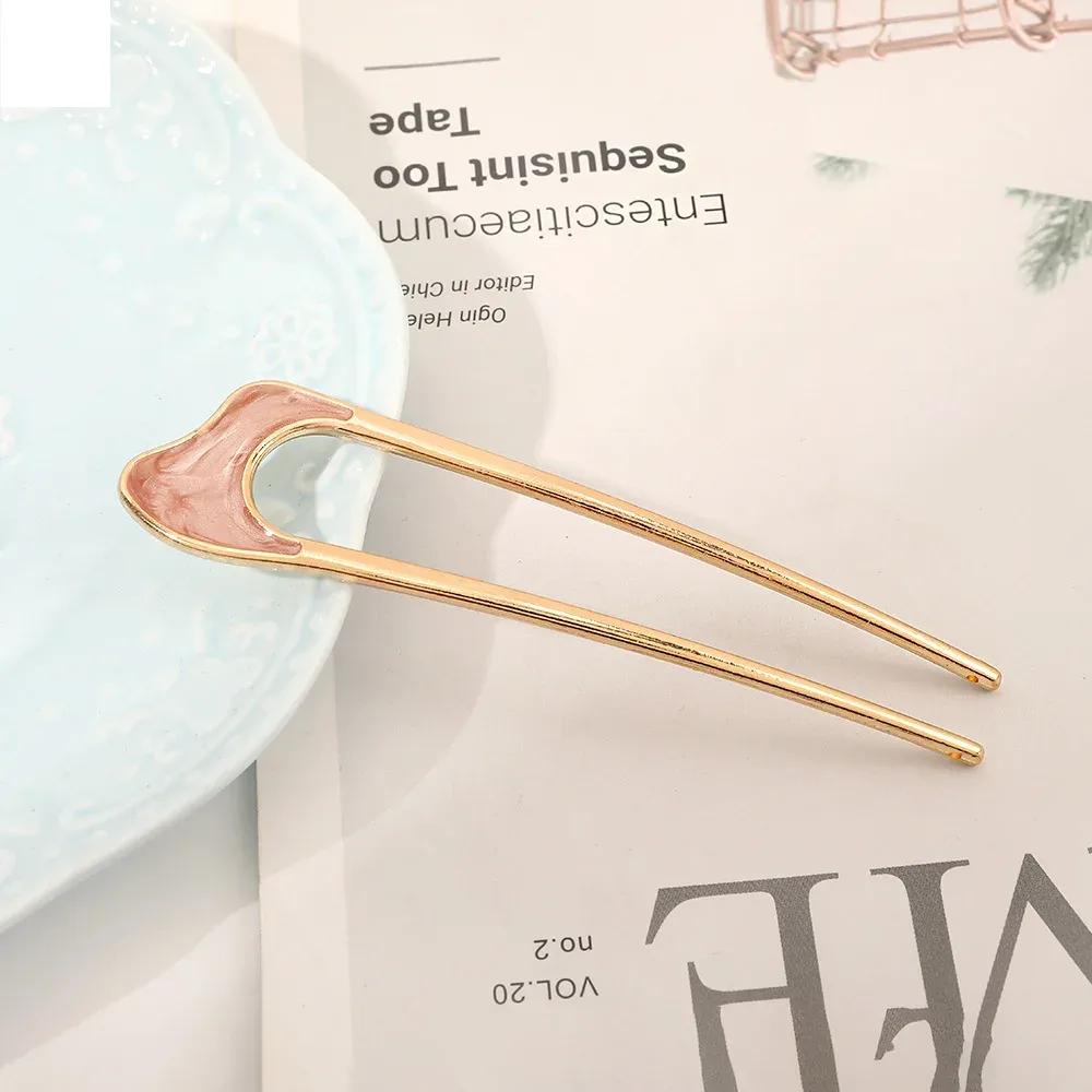 Металлическая U-образная заколка для волос для женщин и девушек, серебряного и золотого цвета, винтажная, элегантная, с эмалью в виде ракушки, шпилька для хвостика, женский головной убор, подарки
