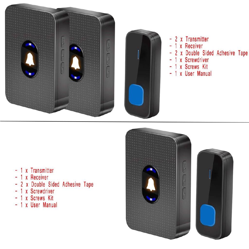 Тип: 1x Приемник-колокольчик + 1x Кнопка-передатчик, 2x Приемник-колокольчик + 1x Кнопка-передатчик