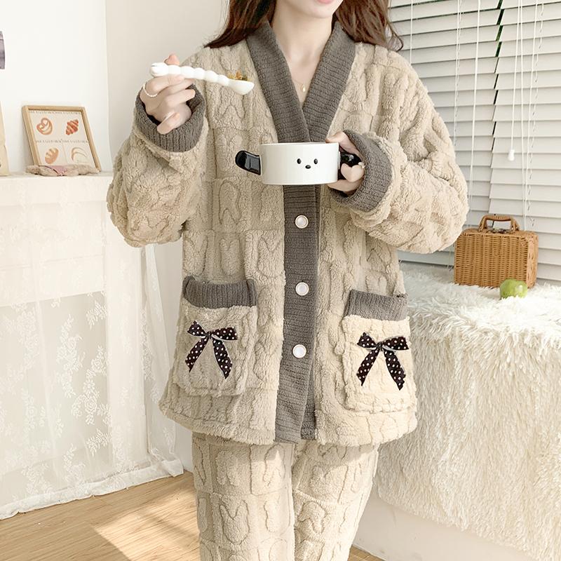 Большие размеры Зимняя женская теплая домашняя одежда Пижамы женские Фланель плотный коралловый флис свободная шерстяная пижама плюш коралловый бархат