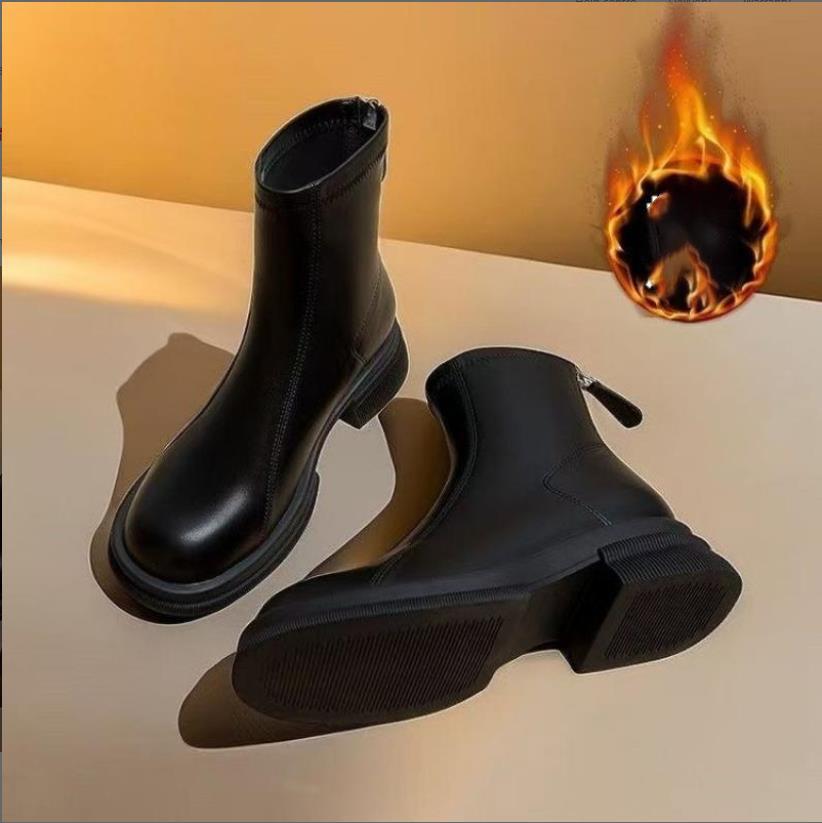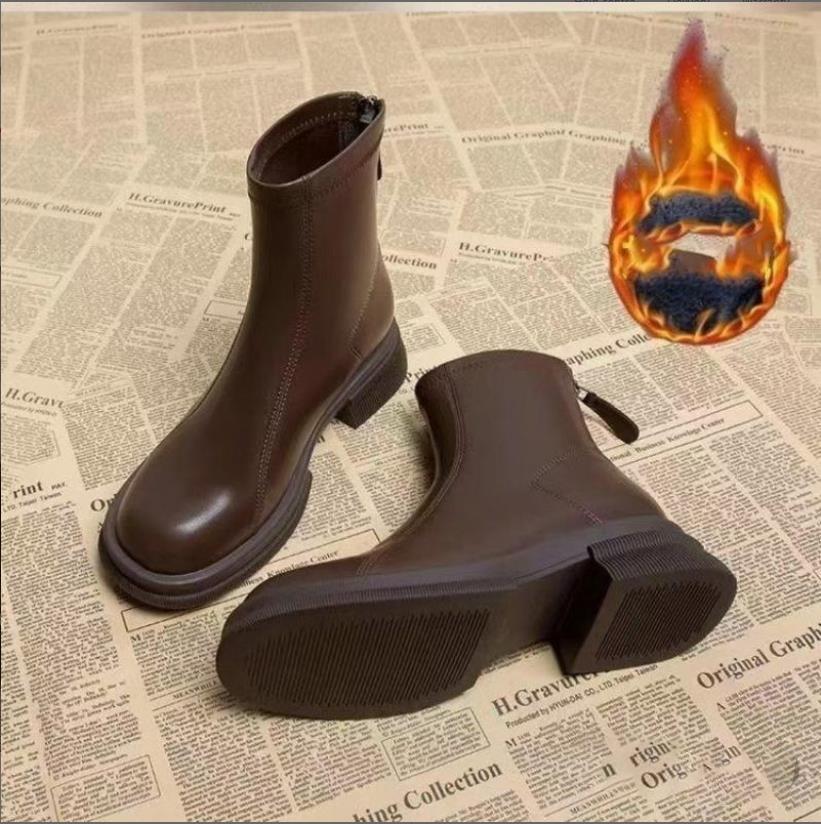 Осень-зима женские ботильоны повседневные молнии сзади туфли на низком каблуке женские винтажные короткие ботильоны
