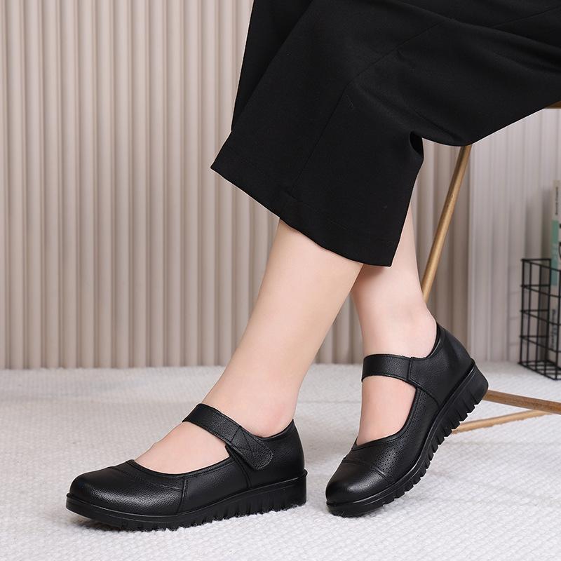 First layer cowhide mother shoes soft leather middle-aged and elderly Velcro flat-soled women's shoes leather comfortable elderly leather shoes
