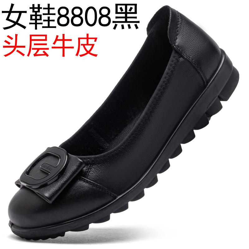 Первый слой коровьей кожи новая осень для среднего и пожилого возраста туфли для мамы натуральная кожа мягкая подошва одинарные туфли удобные с мелким вырезом женские л