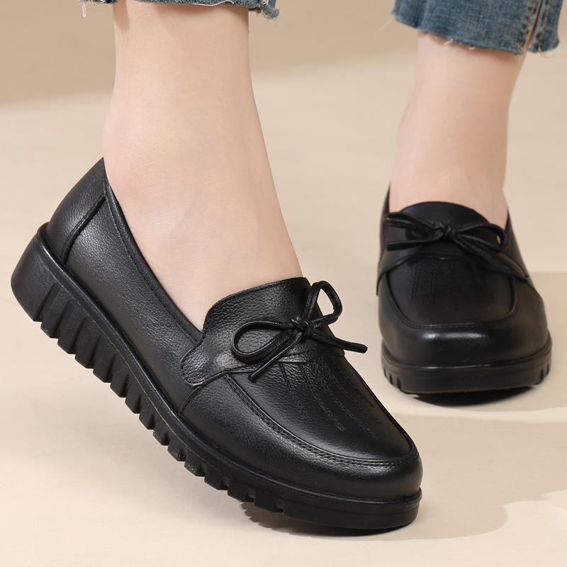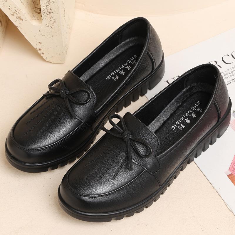 The first layer of cowhide mother shoes Doudou shoes, autumn casual and comfortable soft-soled women's shoes, elderly shoes, middle-aged and elderly