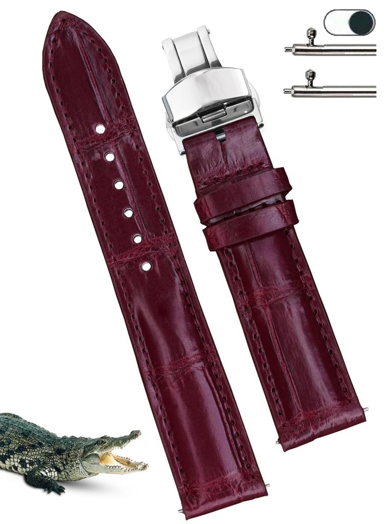 Vinacreations 20 мм Винно-красный Ремешок для часов из крокодиловой кожи Замена ремешка для часов из аллигатора с быстросъемной пружиной Серебряный Наручный Ручной работы для мужчин