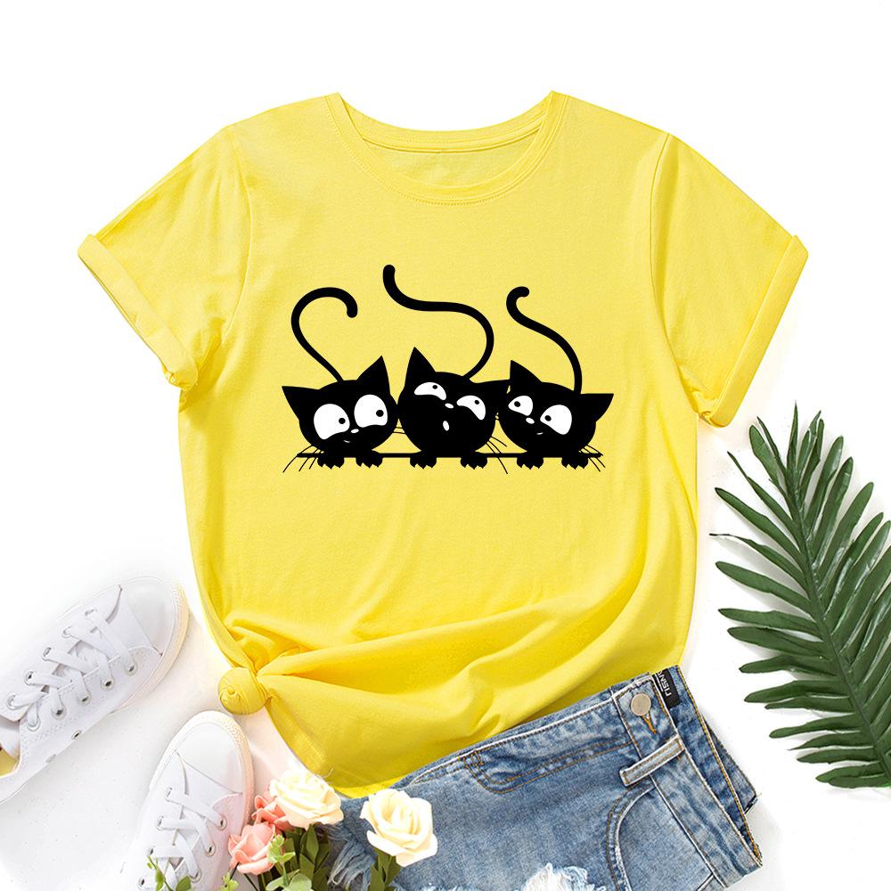 Хлопковая футболка с коротким рукавом и круглым вырезом, женская, с 2D-принтом, топы
