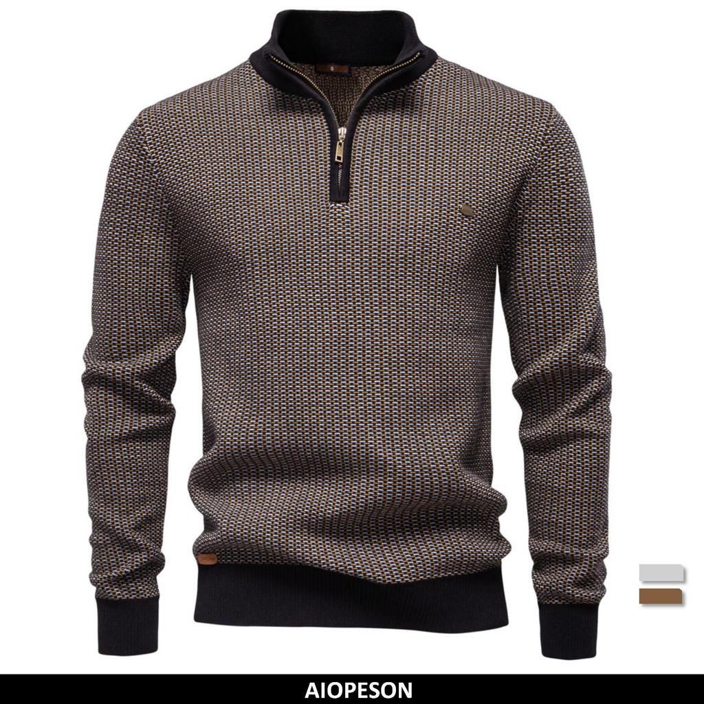 AIOPESON Классический полосатый трикотаж Мужской свитер из смесового хлопка с воротником-стойкой Теплый Утолщенный Роскошный Зимний свитер для мужчин в стиле Old Money — купить товар онлайн с бесплатной доставкой по всему миру!