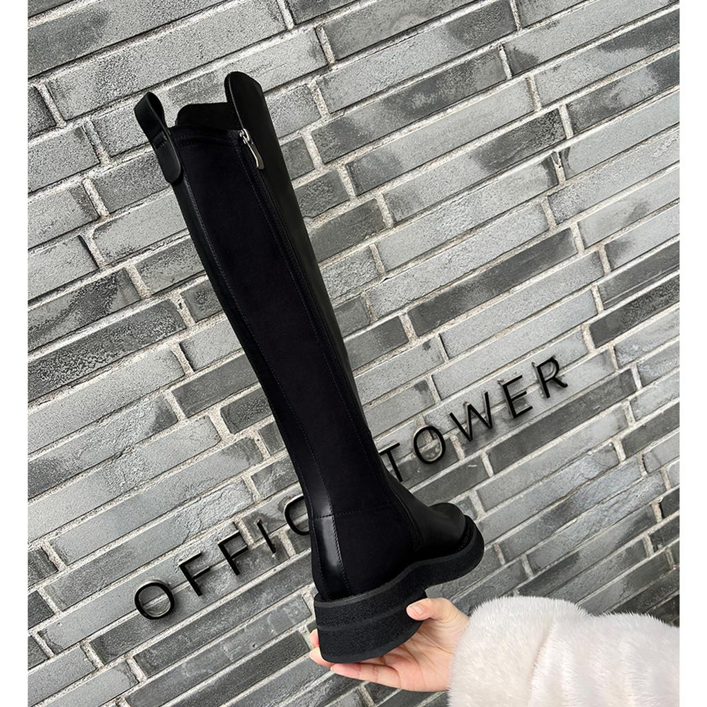 Версия из коровьей кожи~ 2025 новые на толстой подошве маленькие, средние и длинные эластичные сапоги-рыцари женские осенне-зимние кожаные высокие сапоги