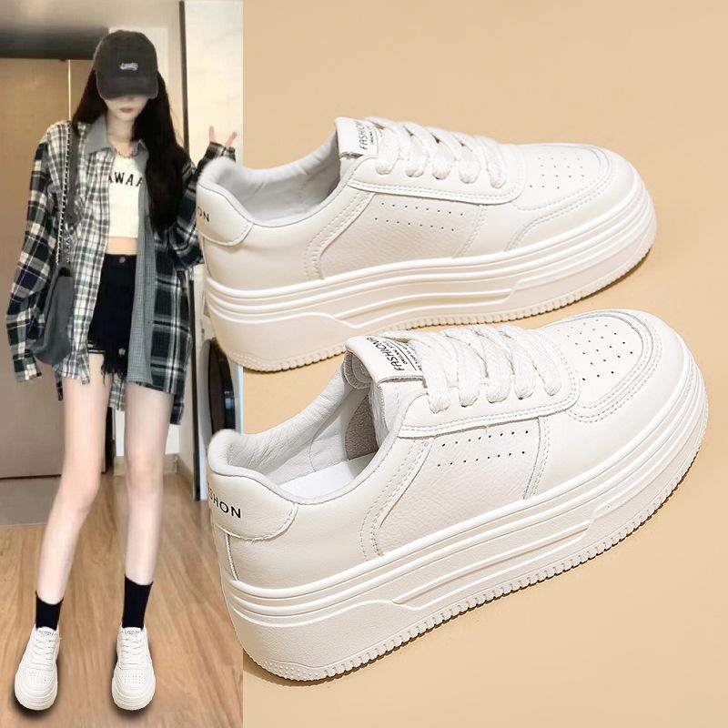 Showing feet, small thick-soled white shoes, women's thick-soled heightening women's shoes 2025 new popular spring and autumn versatile casual spo