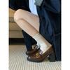 Ретро квадратный носок толстый каблук лоферы на одной педали осень 2025 новая обувь на высоком каблуке маленькие кожаные туфли женские туфли в британском стиле
