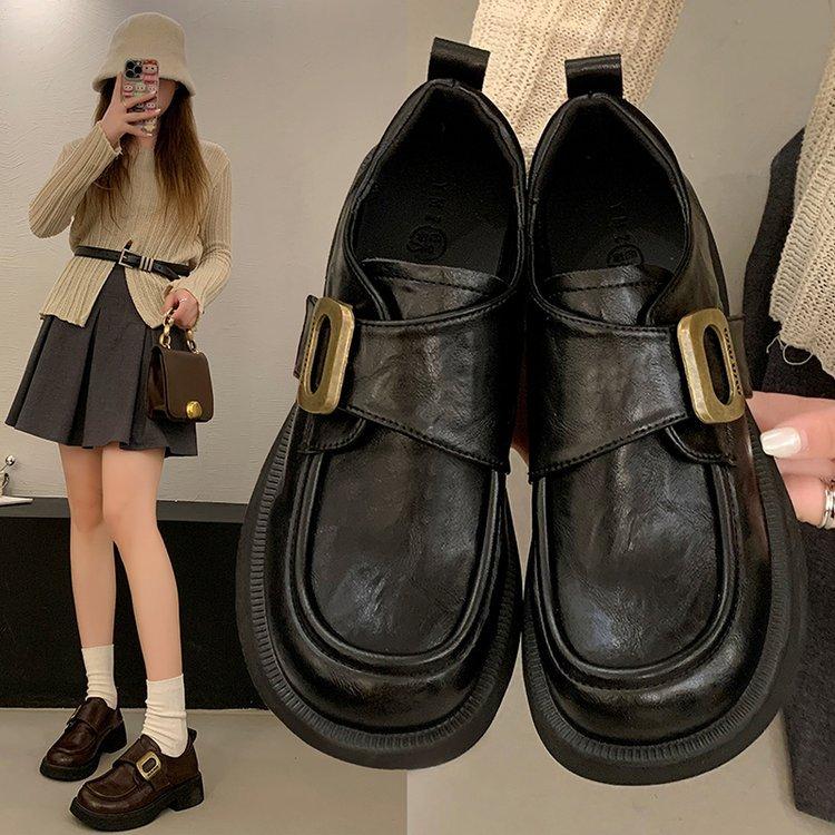 Retro platform loafers women's leather 2025 new Mary Jane thick heel round head versatile fashion British small leather shoes