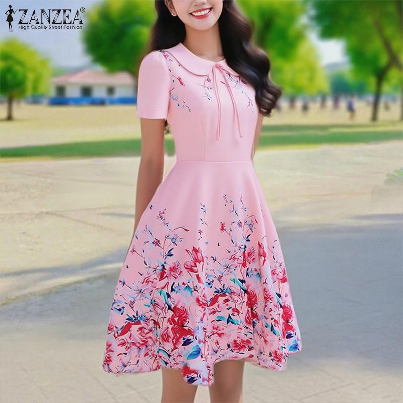 ZANZEA Женское летнее повседневное платье с принтом и кукольным воротником и короткими рукавами — купить товар онлайн с бесплатной доставкой по всему миру!