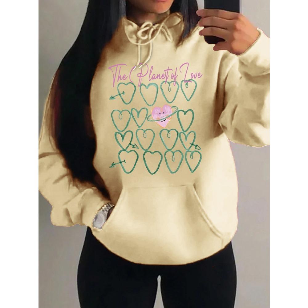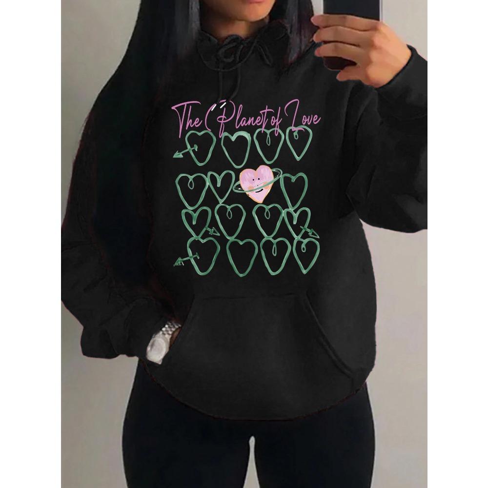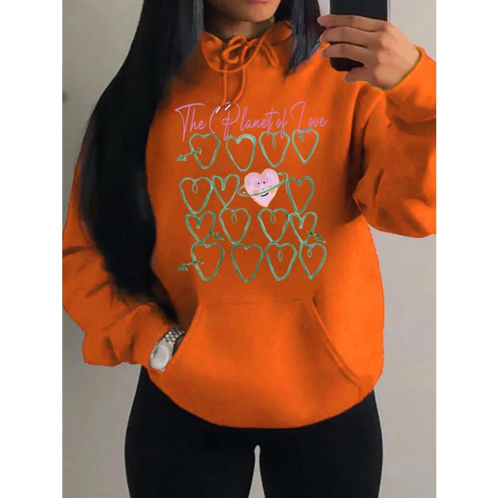 Худи с принтом «Планета любви» в виде сердца, женская, уличный стиль, карманы, мода 2000-х, флисовая толстовка, повседневная, разноцветная.