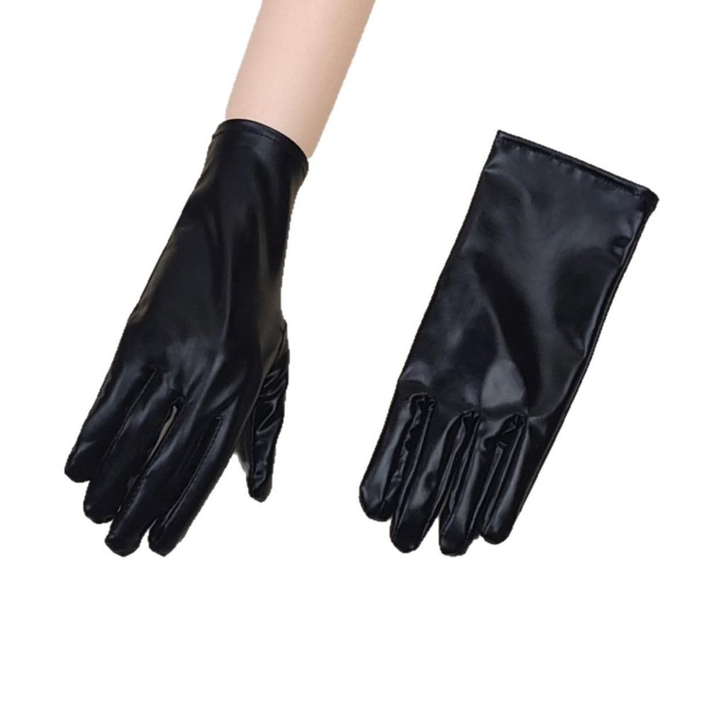 Рождество Хэллоуин Кожа Черная Блестящая Кожа Панк Стиль Стальная Труба Сценическое Выступление Декорации Реквизит Косплей Короткие Перчатки