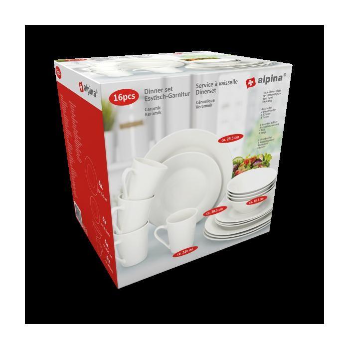 Service de Table - ALPINA - 16 Pièces - Faïence - Pour 4 Personnes - Compatible Lave-Vaisselle