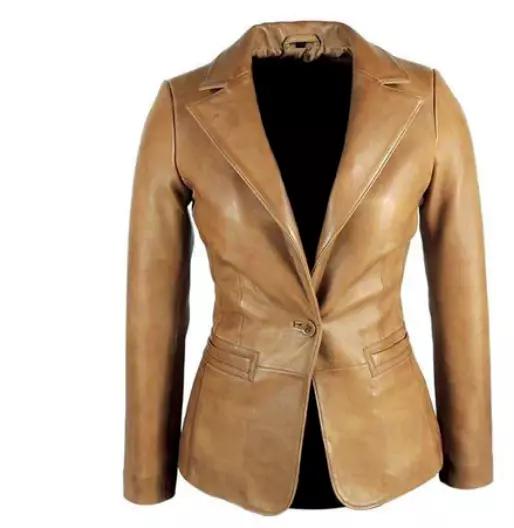 Блейзер Дизайнерский Вечеринка Женский Ручной работы Кожаный Коричневый Ягненок Новый Формальный Стильный