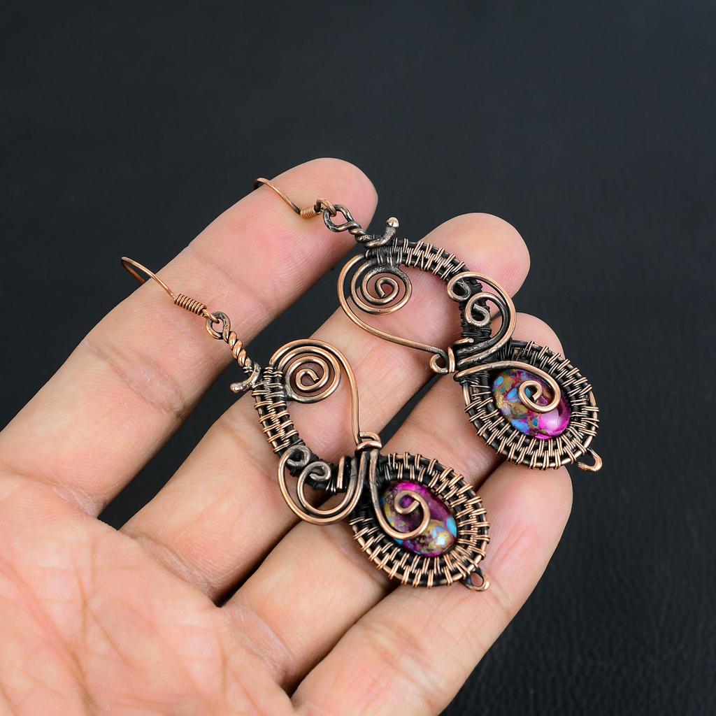 Pink Spiny Oyster 999 Copper Wire Wrapped Earrings, Handmade Gemstone Jewelry Earrings, For Memorial Day