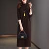 Вязаное платье длиной до колена Женское платье средней длины свободного кроя Большого размера Платье-свитер Однотонный Повседневный Пуловер с полувысоким воротом