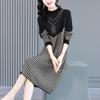 Повседневное однотонное трикотажное платье средней длины для женщин Осень и Зима С длинными рукавами Французское клетчатое А-силуэт Платье-свитер Пуловеры