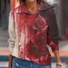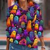 Женская футболка, свободный пуловер, спортивные топы, повседневный топ с V-образным вырезом и длинным рукавом с принтом