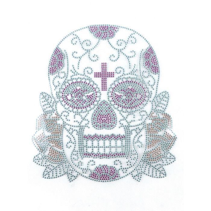 Термотрансфер с клепками и стразами Мексиканский Череп Металл 1