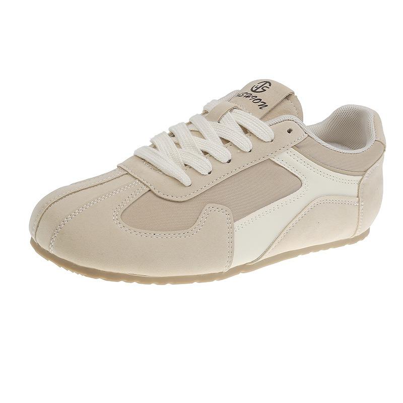 Fashionable contrasting shoelaces round square head casual style women's college style sports board shoes