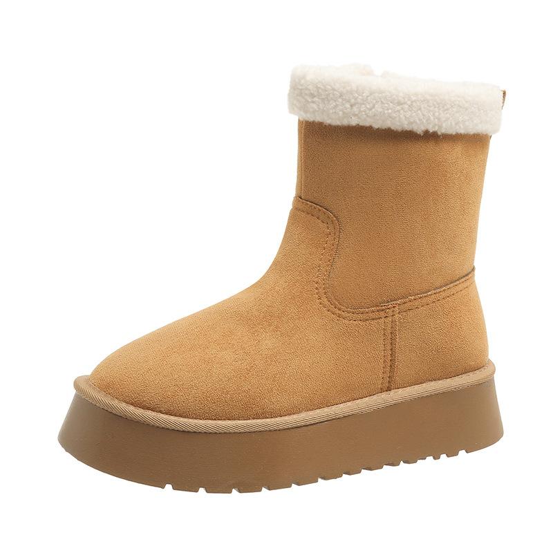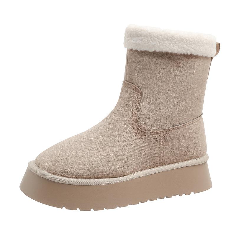 Универсальные теплые зимние сапоги на толстой подошве для женщин, новые ретро-сапоги из ворсистой хлопковой ткани, пушистые короткие сапоги.
