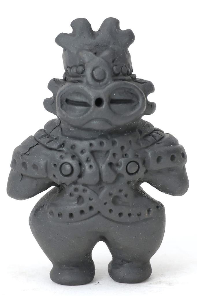 [Это бисквитная глиняная фигурка-реплика, которая является точной копией подлинной глиняной фигурки Дзёмон] 1. Он изготовлен из той же отечественной природной глины, что и в период Дзёмон.. 2. Глину многократно разминают для создания конечного продукта.. 3. Затем из него делают трехмерную фигурку, украшают узорами из глиняной фигурки и полируют до глянцевого блеска.. 4. Глиняная фигурка, которая выглядит как настоящая, изготавливается тем же способом обжига, который использовался в период Дзёмон.
