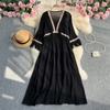 Винтажные длинные платья, женское летнее кружевное платье трапециевидной формы с v-образным вырезом и половиной рукавов и кисточками в стиле пэчворк, с высокой талией