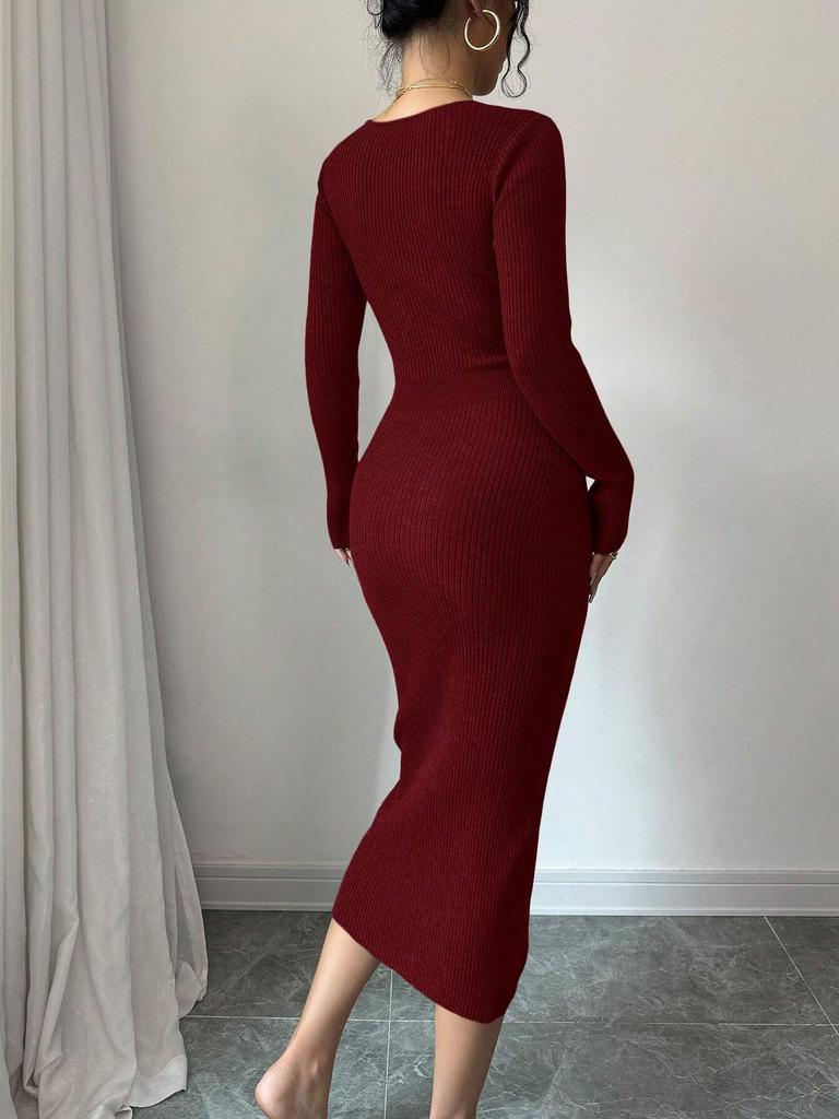 Женское вязаное элегантное платье-запа́х, миди, облегающее фигуру, с высокой талией, V-образным вырезом и длинным рукавом, осенне-зимние платья