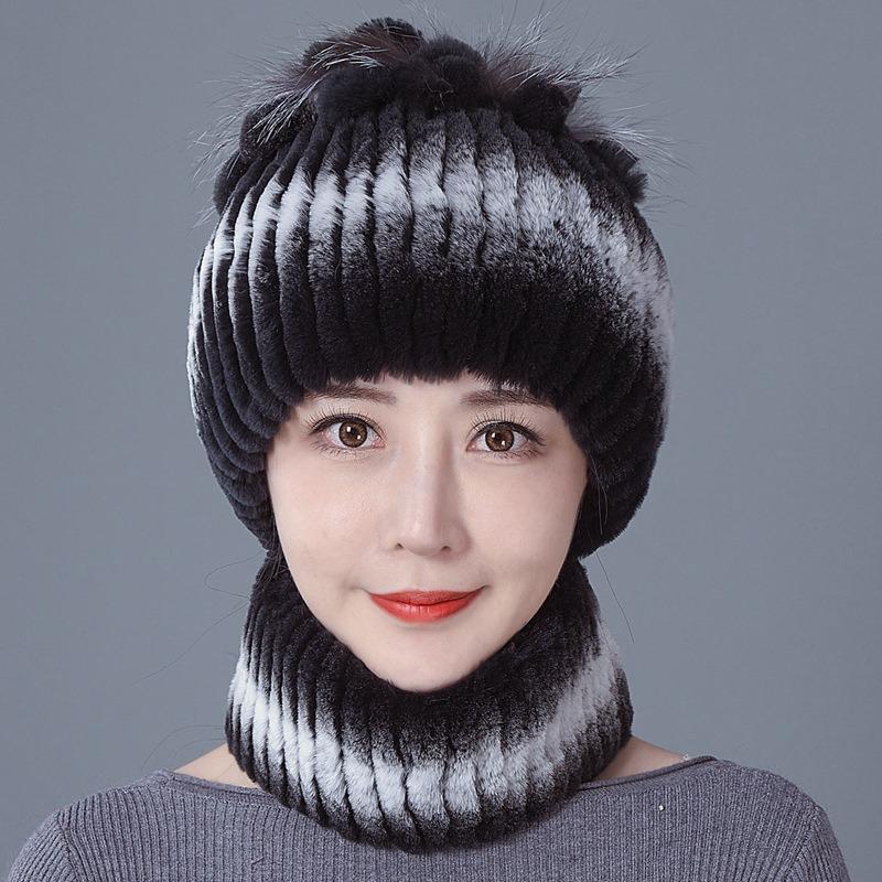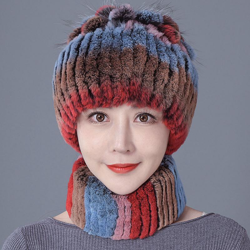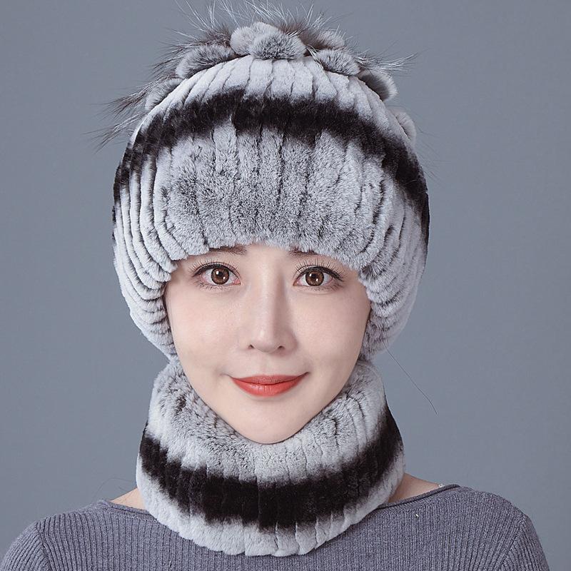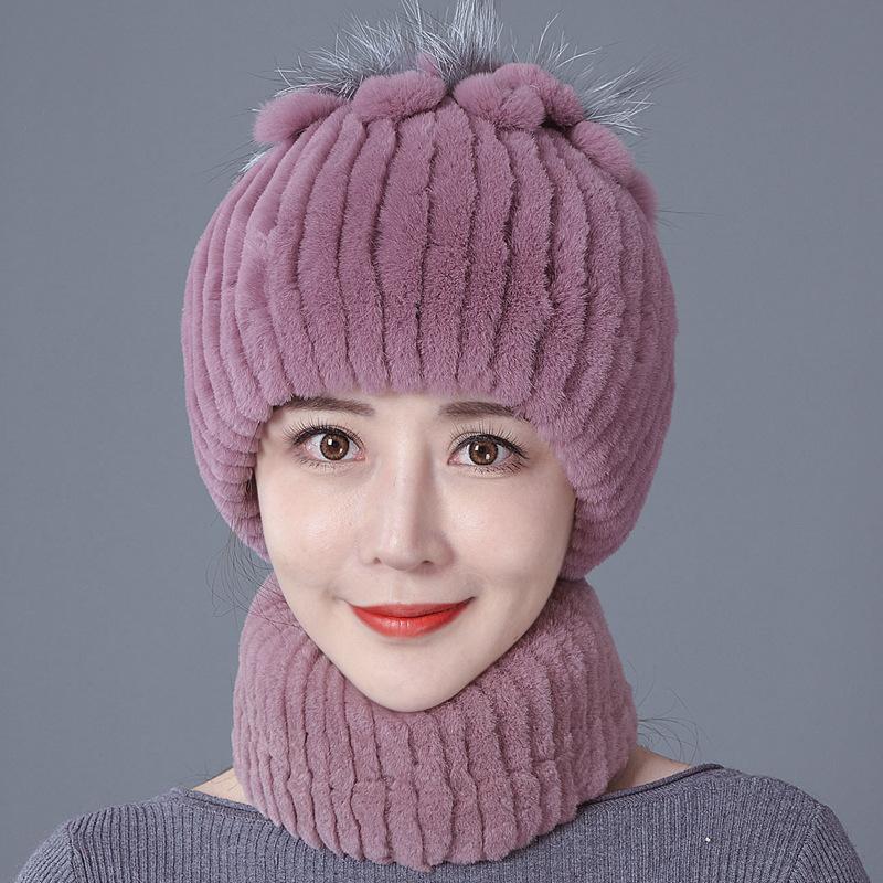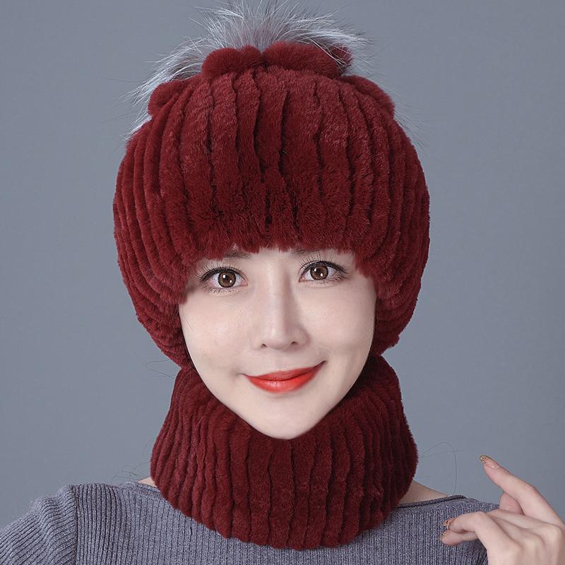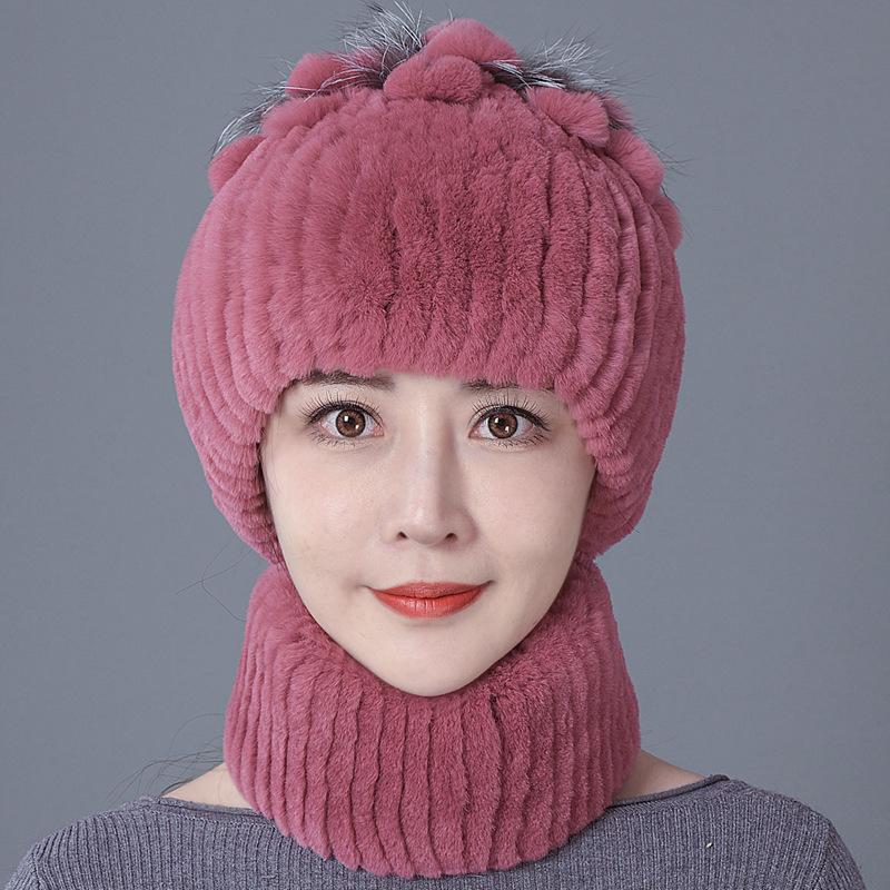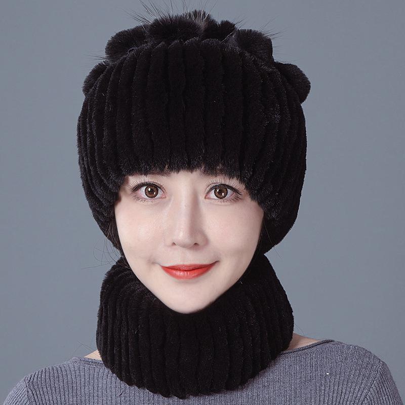 Новая шапка из меха кролика Рекс, женская осенне-зимняя теплая шапка, модный утолщенный защитный шарф для ушей, цветочный костюм прилив