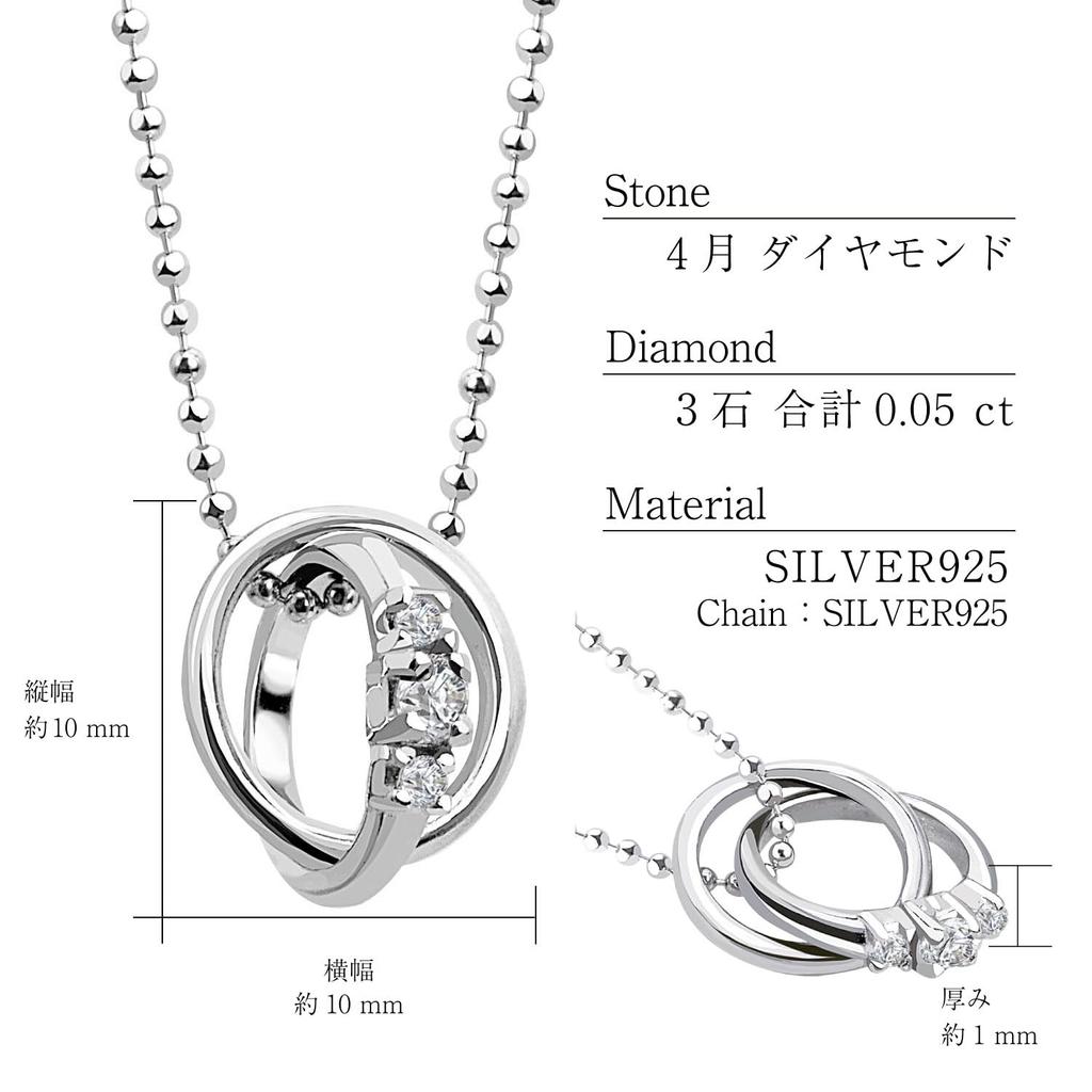 Center stone: April birthstone diamond, diameter approx. 2mm x 1 stone / Side stones: 0.01ct x 2 stones