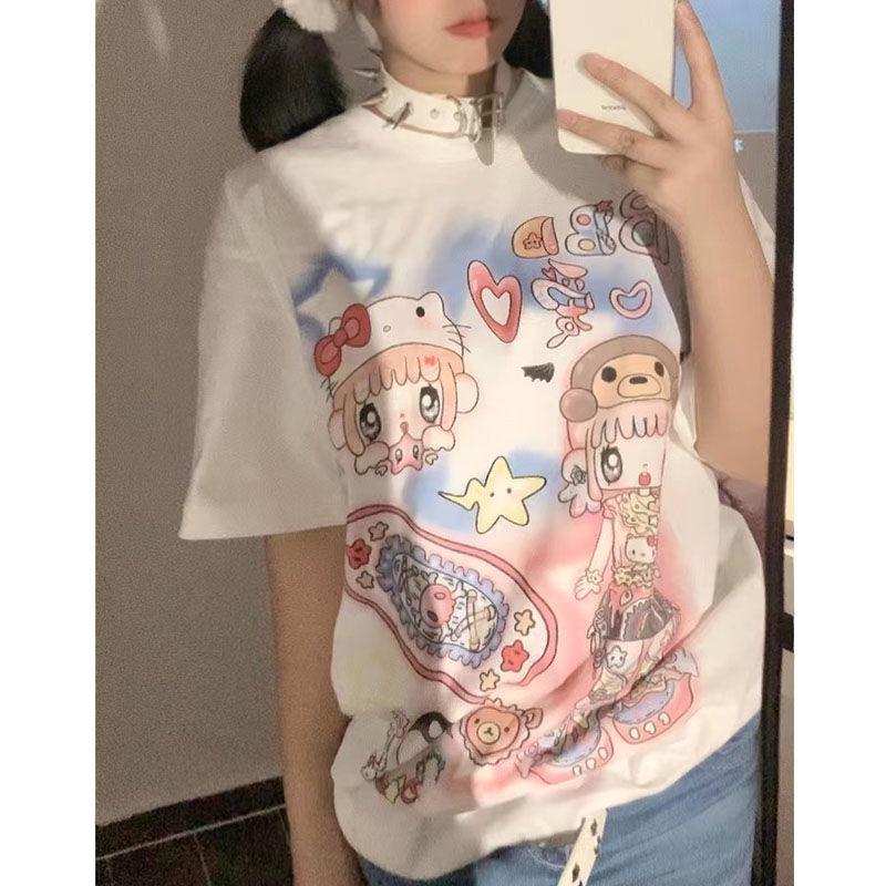 Y2k Harajuku Streetwear Футболки женские японская мода Kawaii Star Cartoon Print Loose Tees Tops Soft Gril Summer