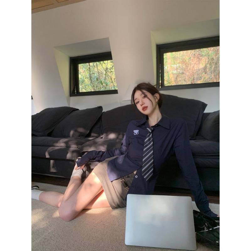 Женские блузки, белые рубашки с длинным рукавом Y2k с вышивкой и галстуком, корейская мода, тонкие топы Lolita Harajuku JK