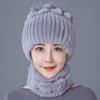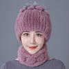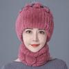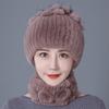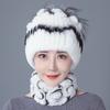 Шапка из меха кролика, женская зимняя мода, универсальная, теплая, зимняя защита для ушей, шарф из меха кролика Рекс, комплект из двух предметов, меховой костюм из меха