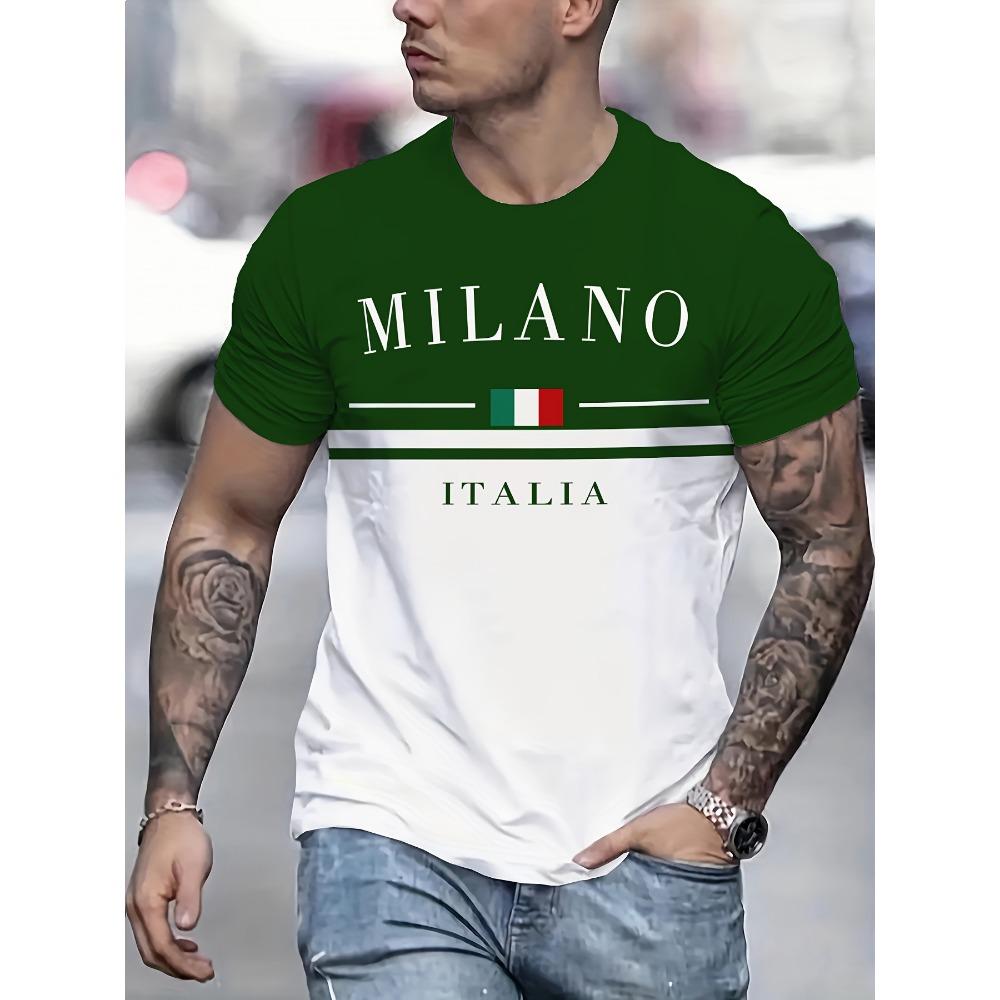 Италия Милан Узор Письма 3D Принтованные Мужские Футболки Короткий Рукав Повседневные Топы Мужская Футболка с Круглым Вырезом Мальчики Свободная Уличная Одежда