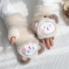 Корейская версия милых мультяшных перчаток-варежек для женщин. Зимние, теплые, с утолщенным плюшем, с открытыми пальцами, ветрозащитные перчатки для езды.