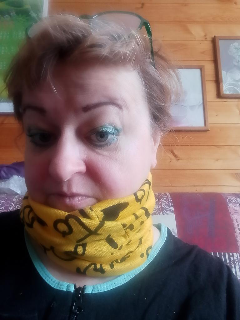 Какой-то весь перекрученный. Как снуд маловат, придушивает. А как на голову намного лучше 👍