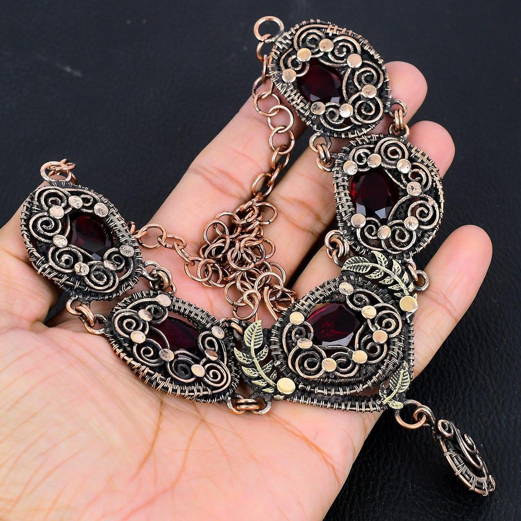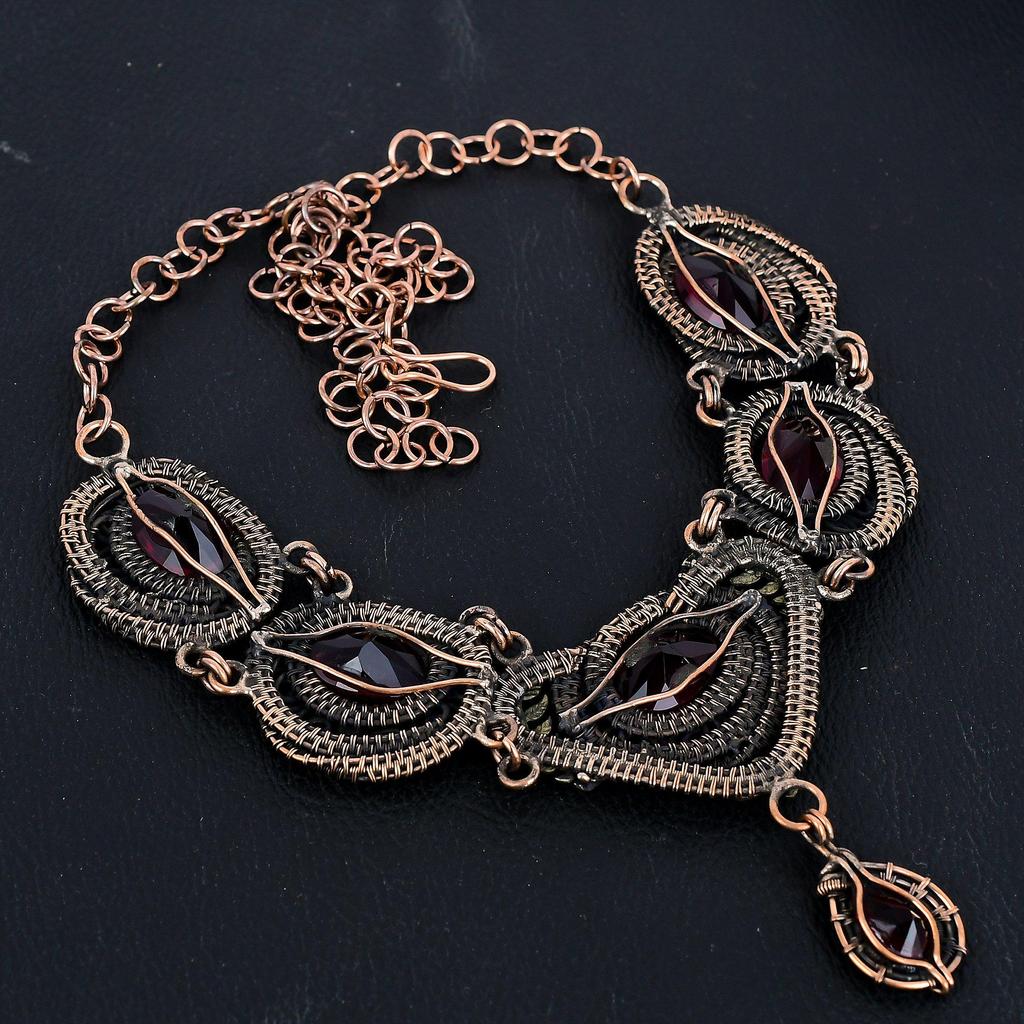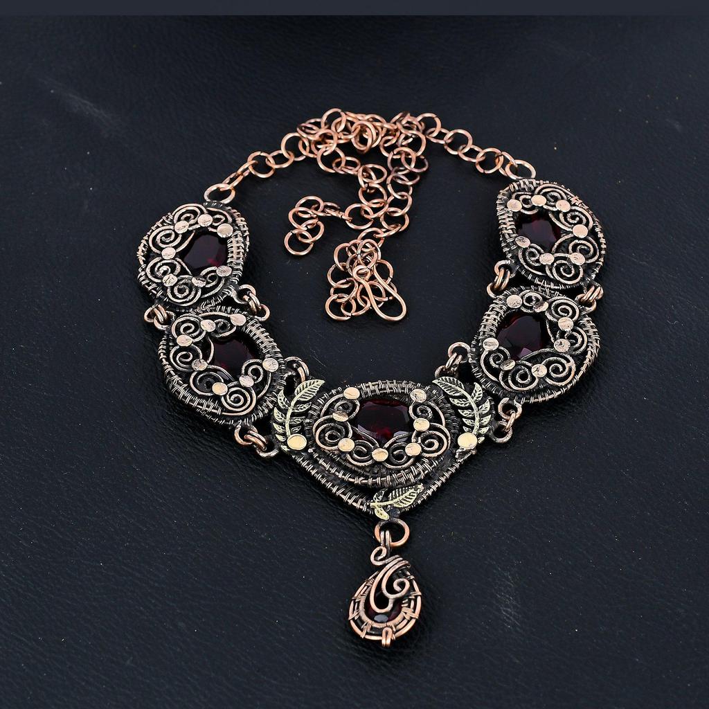 Ожерелье с гранатом, ювелирное украшение из драгоценного камня, обернутое медной проволокой 999 пробы, регулируемая цепочка, подарок для женщин, ожерелье ручной работы