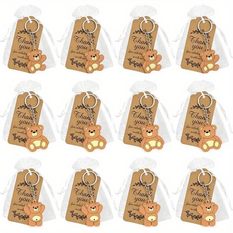 12 шт., сувениры для детского душа, подарок, брелок с медведем и сумкой из органзы, бирка из крафт-бумаги с благодарностью для гостей, для девочек и мальчиков, поставка для дня рождения