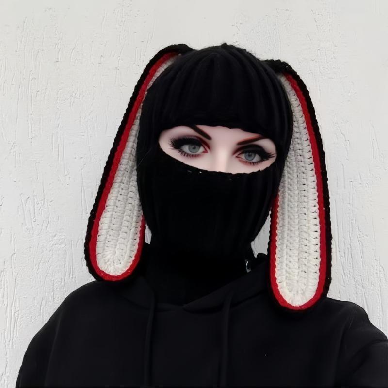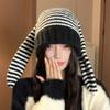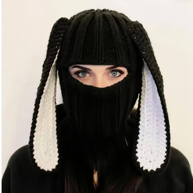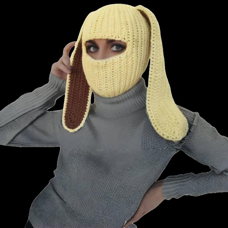 Женская шапка-кролик с большими ушами, сочетающая цвета, вязаная шерстяная шапка, теплая шапка на осень и зиму, универсальная милая маска